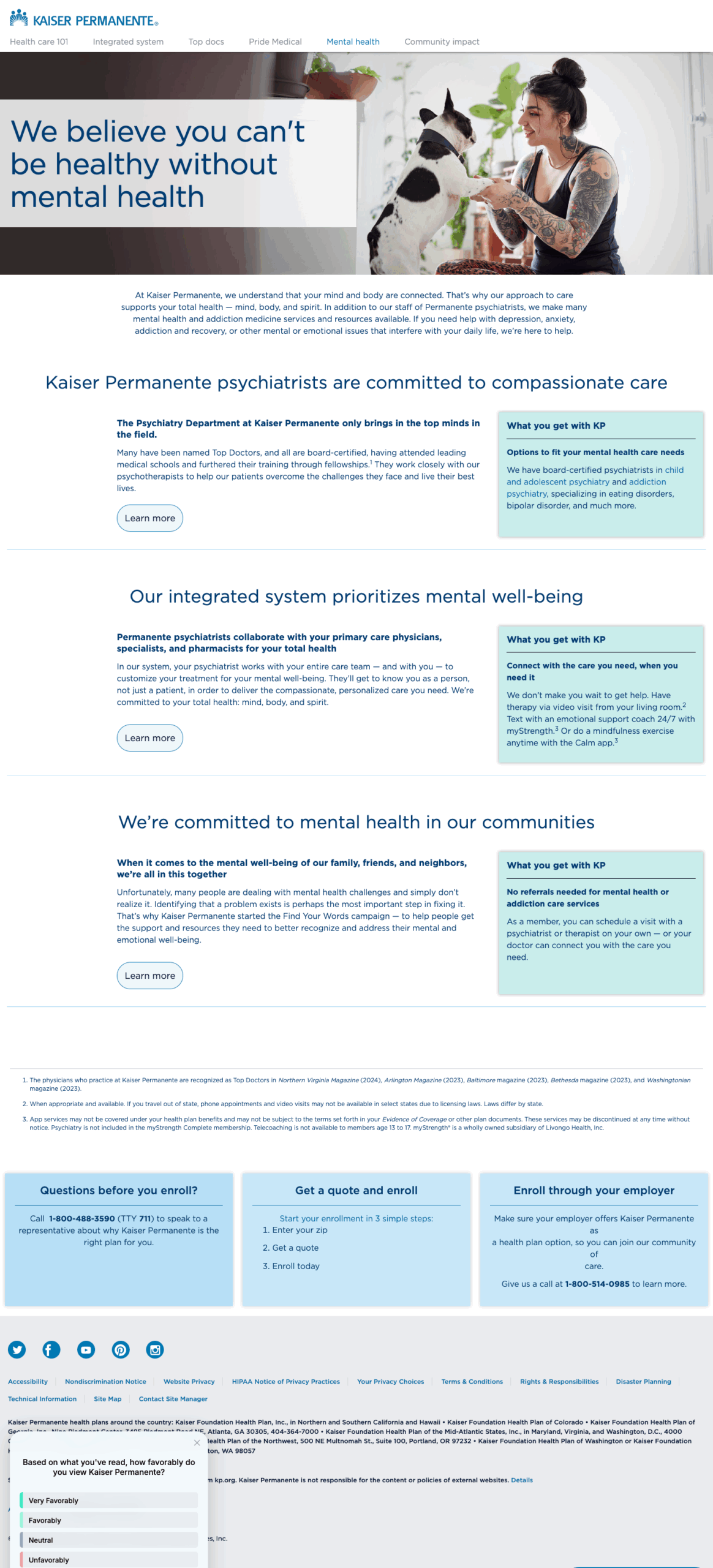 Choosing a health care provider is one of your first truly adult decisions. Make it a good one with Kaiser Permanente. From our preventive medicine designed to keep you healthy and build good health care habits, mental wellness that is connected to your physical health providers, to convenient urgent care options when something sudden pops up.
