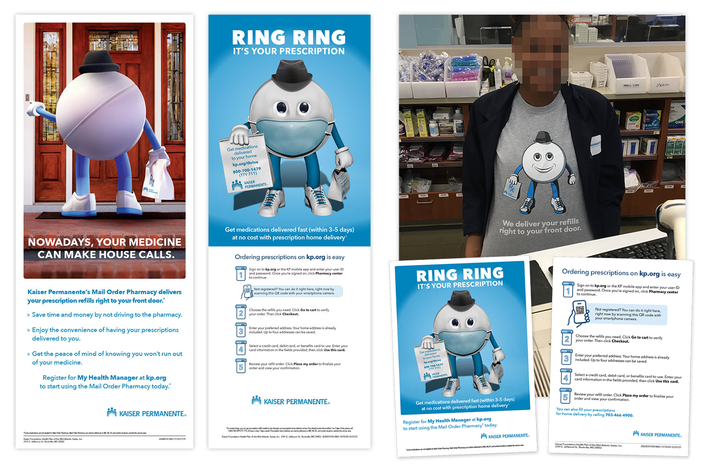 To boost adoption of Kaiser Permanente Mid-Atlantic region’s mail-order RX refill service, we took inspiration from the days when doctors made housecalls. Enter: Mr. Pill—a friendly, fedora-wearing mascot. His job is more than delivering refills, he delivers a clear value proposition: more convenience, less cost, and no pharmacy lines.